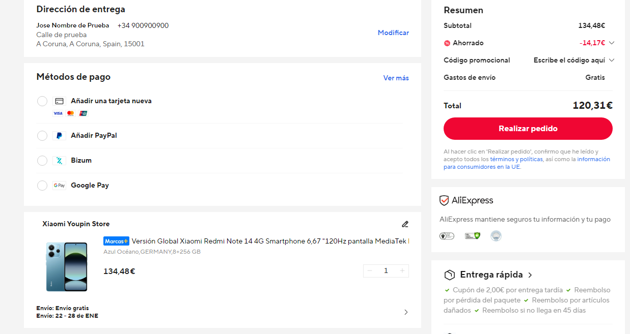 Disponible a 120.3€ en Aliexpress aplicando código IFPMUCVZ (captura). Más barato que en otras tiendas, como por ejemplo en Amazon a 127.96€.