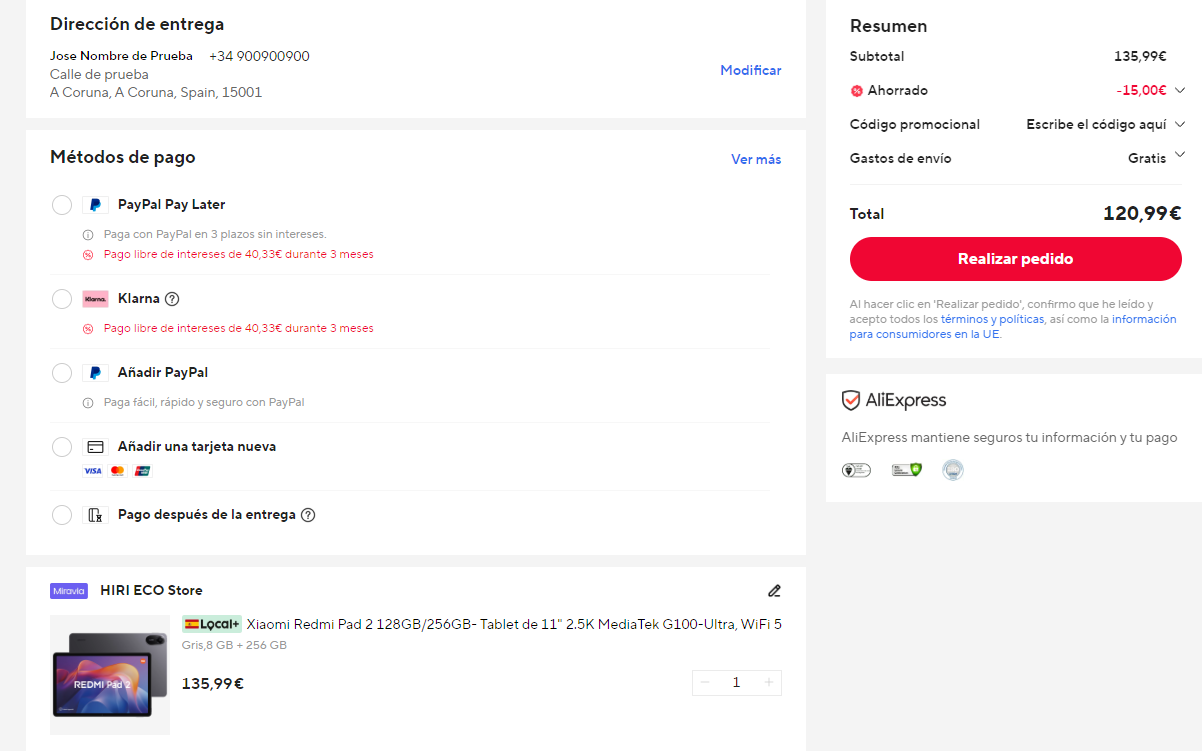 - Variante 2: 8 GB LPDDR4X + 256 GB UFS 2.2 - 120.99€