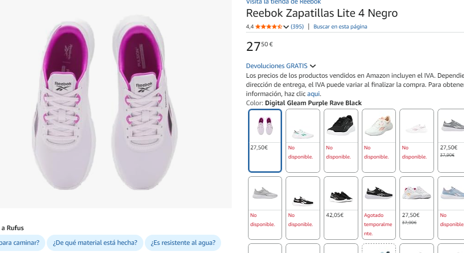 Disponible a 27.5€ en Amazon del 36 al 40 (captura). Más barato de lo que costaban la semana pasada a 37.5€.