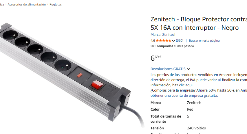 • Marca / Modelo: Regleta Zenitech con protección