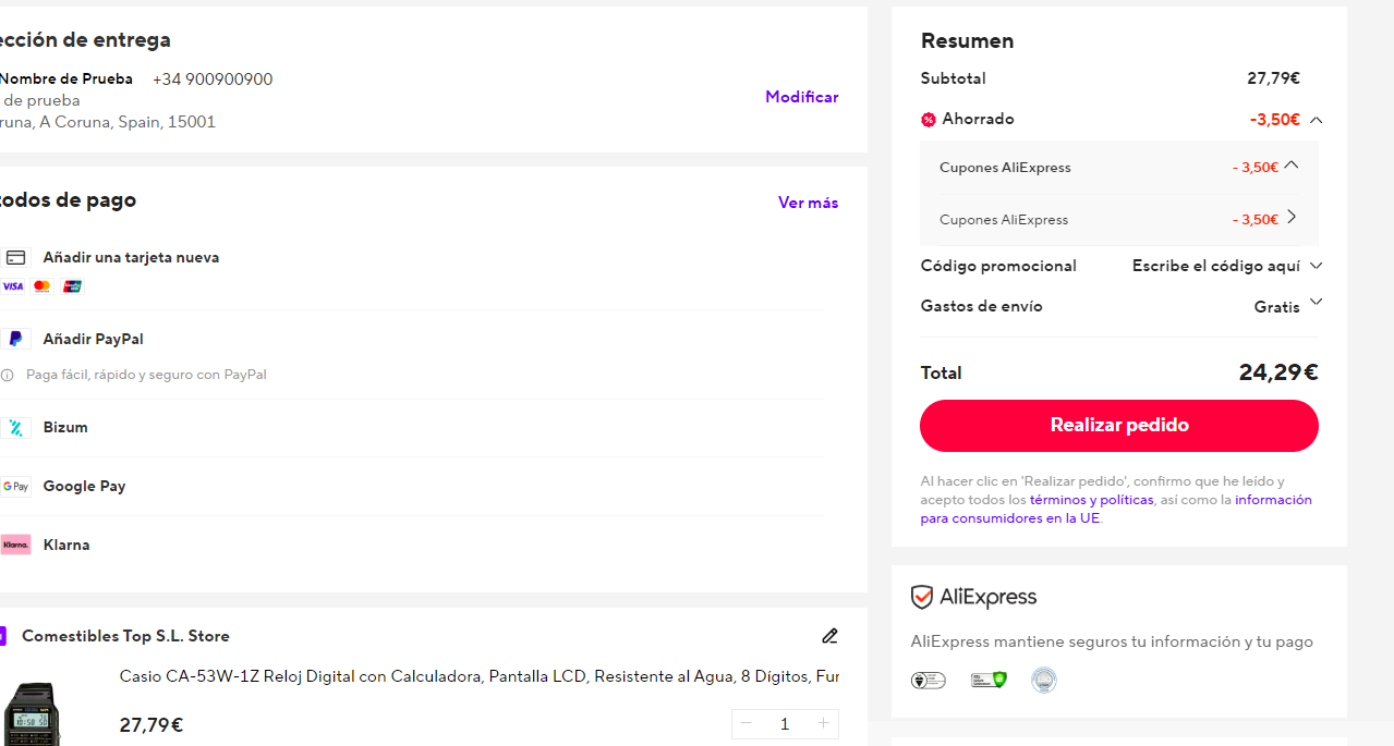 Disponible a 24.3€ en Aliexpress aplicando código IFP8I9WN (captura). Más barato que en otras tiendas, como por ejemplo en Amazon a 39.2€.