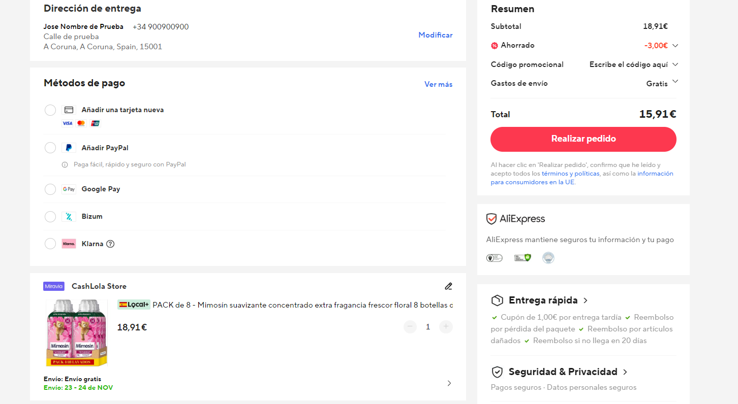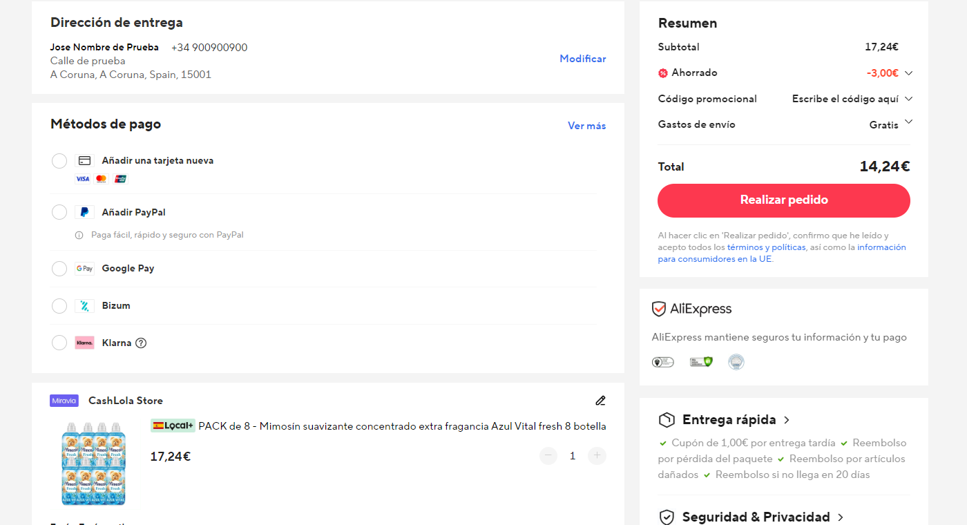 También disponible a 14.2€ (0.03€ /lavado) en Aliexpress aplicando código ESAE03 (captura).