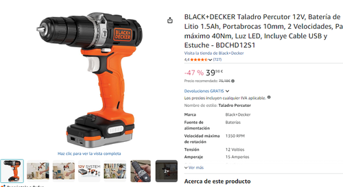 Taladro inalámbrico percutor atornillador Black + Decker - 40Nm ►39.98€