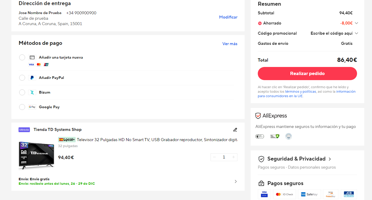 Disponible a 86.4€ en Aliexpress aplicando código BDES08 (captura). Más barato que muy similar en Amazon a 104.89€.