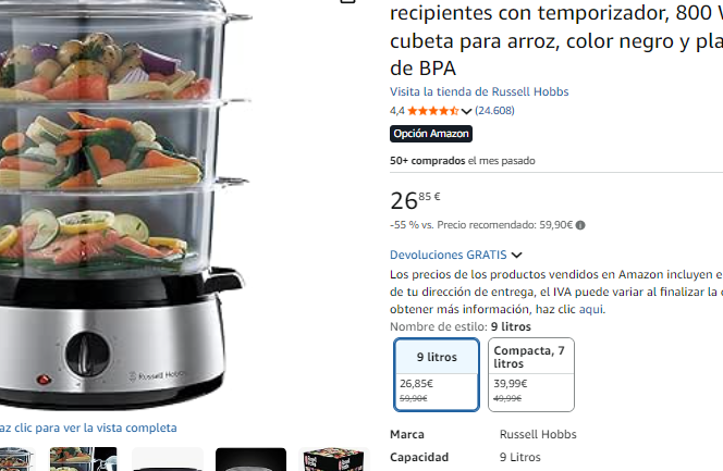 Vaporera Eléctrica Russell Hobbs 9L - 3 niveles con temporizador