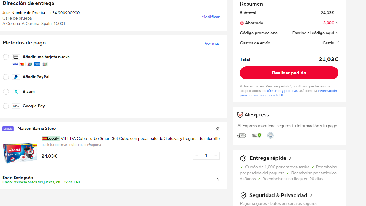 Disponible a 21€ en Aliexpress aplicando código AEMES03 (captura) . Más barato que en Amazon (modelo similar) a 29.99€.