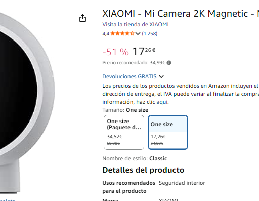 Xiaomi Mi Camera 2K MJSXJ03HL es una cámara WiFi que destaca por su resolución de captura de 2304x1296x (3MP) usando códec de alta eficiencia H265, cosa que permite alta calidad de imagen sin ocupar demasiado espacio. Viene con base magnética que permite mayor personalización de orientación fija.