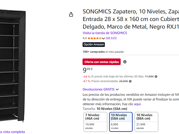 Zapatero cubierto de 10 niveles para hasta 30 pares de zapatos ►9.99€ en Amazon